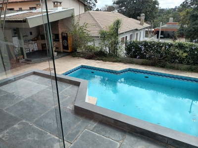 Excelente sobrado localizado no condomínio Morada dos Pássaros, Arquitetura rustica, 03 suítes, ar condicionado, pé direito de 13 metros, projeto com madeiras Maçaranduba, sacada, suíte máster c/hidromassagem e a outra com ofurô, tanques c/peixes ornamentais, área de lazer c/espaço gourmet, sauna, academia e piscina com prainha, paisagismo, aquecimento a gás e elétrico e totalmente mobiliada.